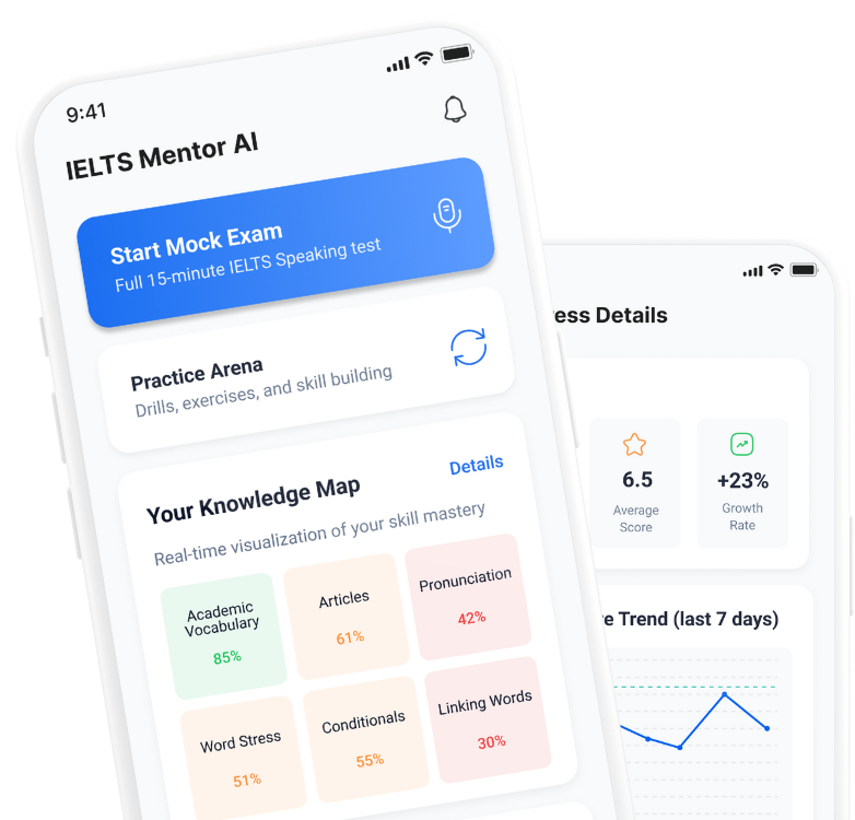 IELTS Mentor AI analyzes YOUR mistakes and builds a curriculum just for you. No generic lessons. No wasted time.