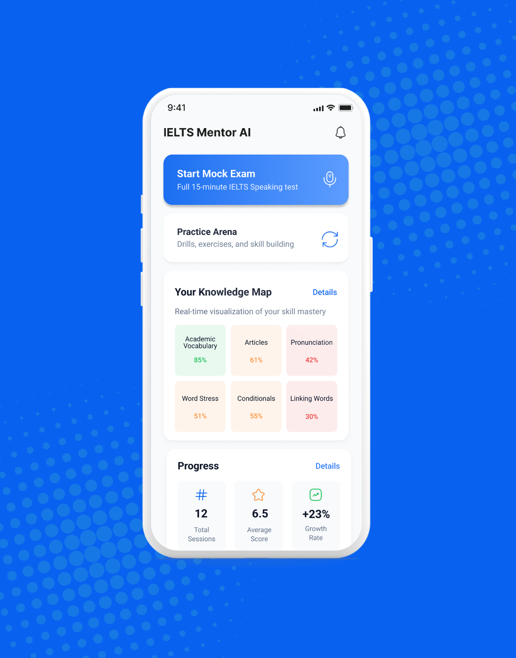 Take control of your IELTS journey. Track your progress, identify weaknesses, and improve strategically — all in one intelligent app.